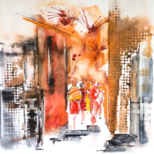 « Force, chaleur et lumière » tels sont les mots qui peuvent venir spontanément à l’esprit en voyant les travaux abstraits ou semi figuratifs de Chantal Patel, qu’il s’agisse de ses aquarelles ou de ses acryliques.
